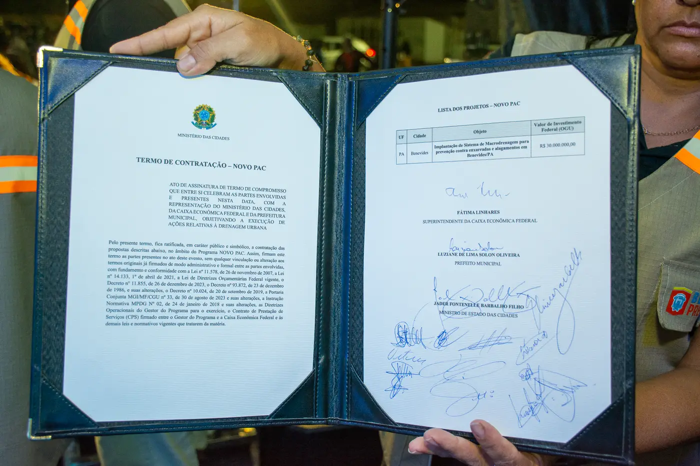 VISITA DO MINISTRO JADER FILHO NAS OBRAS DO RESIDENCIAL CAMINHO DAS FLORES E ASSINATURA DA PEC DA ÁGUA