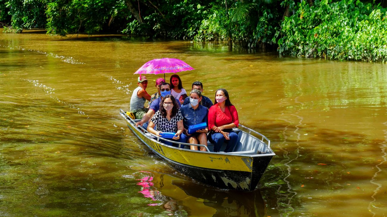 A Prefeita se referia a entrega feita aos dois únicos alunos da Escola Maria Flora que fica na beira do rio Taiassuí, cujo o transporte dos técnicos e professores da Secretaria Municipal de Educação (SEMED) é por meio de barco.