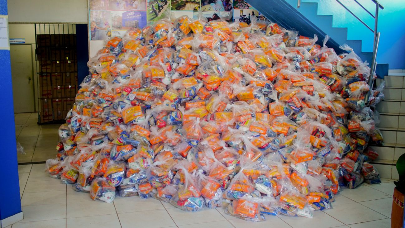 Serão entregues 9.361 kits, cerca de 80 toneladas de alimentos que vão auxiliar os alunos que estão acompanhando aulas remotas desde o mês de março por conta da pandemia do coronavírus.