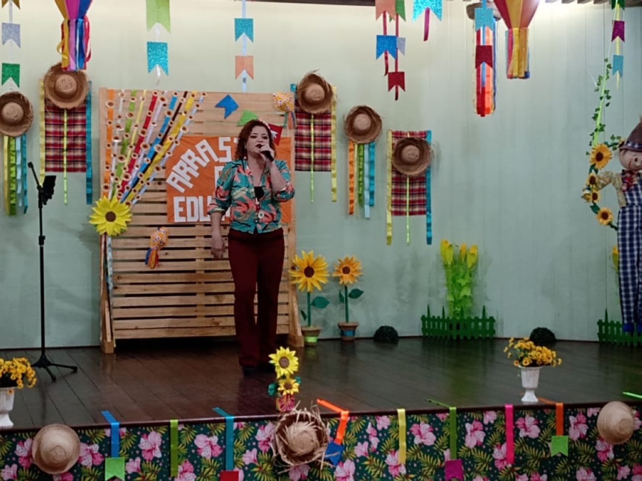 A organização do evento foi realizada genuinamente pelos profissionais da Rede Municipal de Ensino- RME, desde os apresentadores, cantores, até a decoração do espaço perpassou pelas mãos dos educadores. Na programação houve retrospectiva das Culminâncias Juninas nas escolas, sorteios e muita música, em agradecimento a todos que se empenharam no primeiro semestre de 2021.