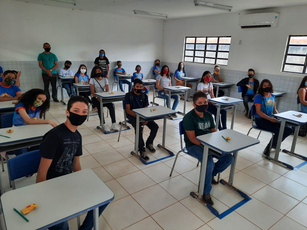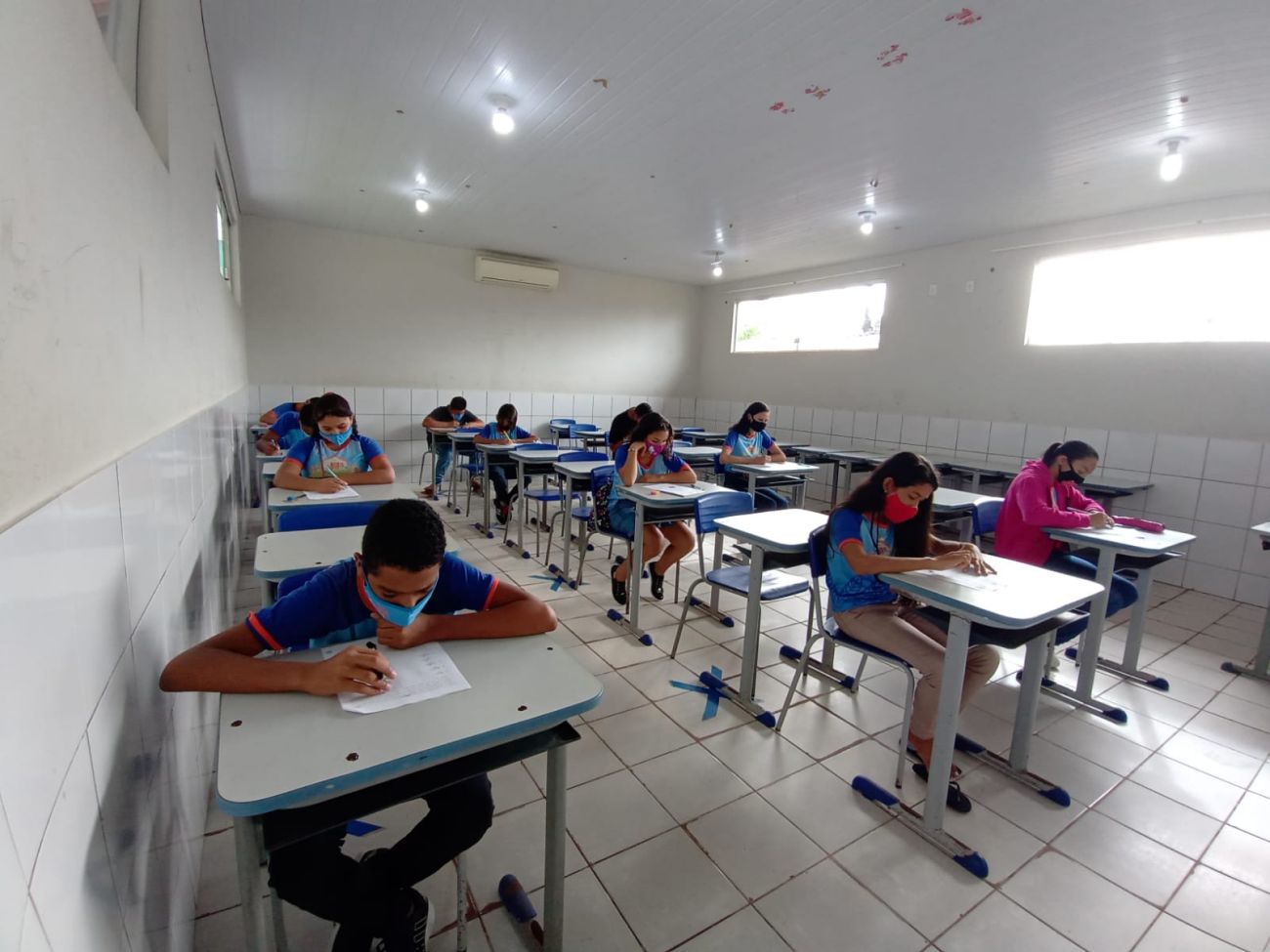 Mais de 780 alunos da Rede de Ensino realizaram o teste. Por conta da pandemia, foram organizados numa média de 15 a 20 alunos em cada sala, isto é, 50% da turma, respeitando os protocolos de segurança, orientado pela vigilância sanitária de Benevides.