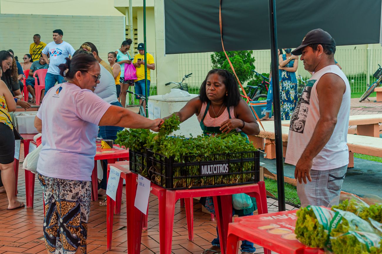 Estão sendo comercializados pescados das espécies pirarucu e tambaqui, além de camarão, hortaliças, legumes e verduras. O pescado é produzido em cativeiro por produtores locais. Cerca de cinco produtores de Benevides fazem parte da ação. A Prefeitura Municipal de Benevides custeia uma porcentagem do valor, para que sejam oferecidos preços mais baixos para a população. Cada consumidor poderá comprar até três quilos do pescado.