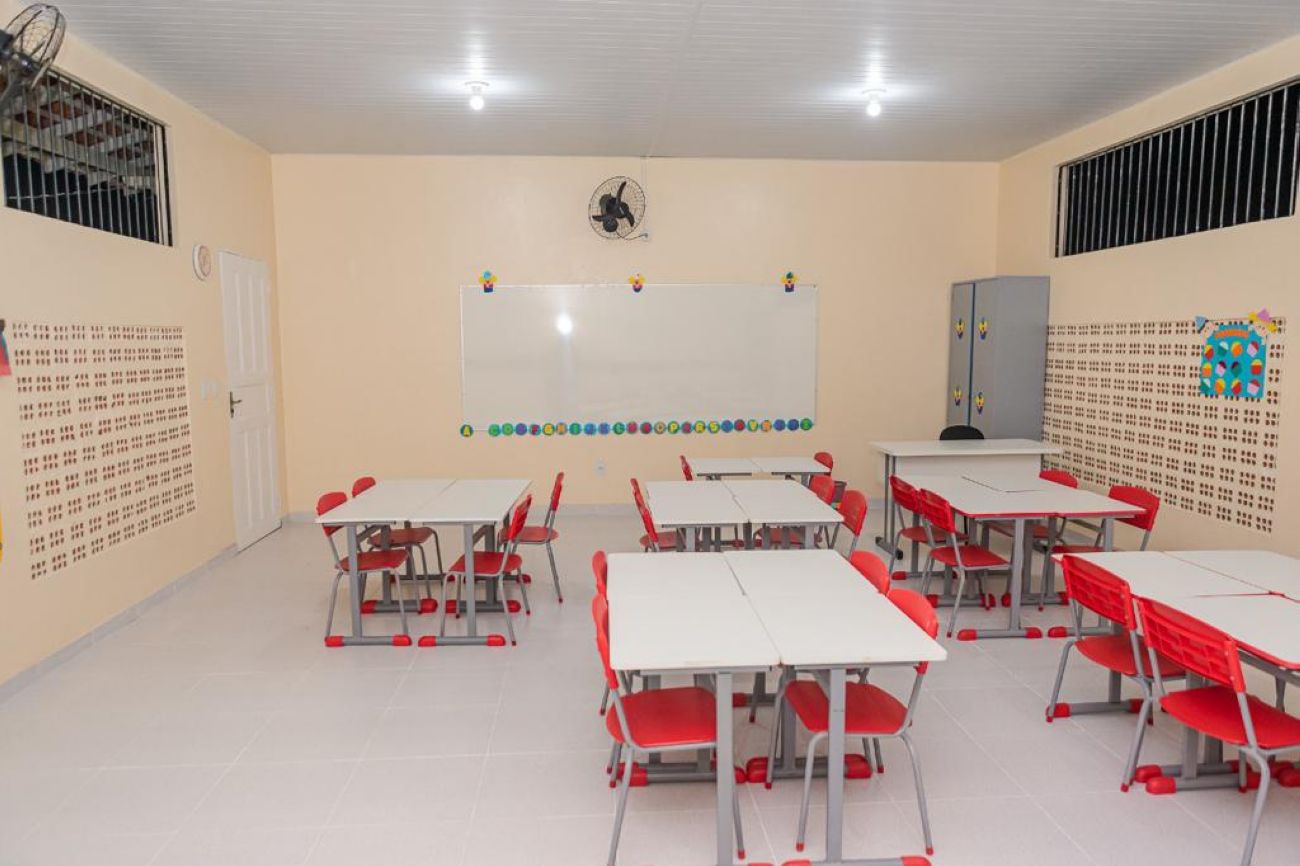 Com a reforma e ampliação, a escola tem hoje duas salas de aula, cantinho de leitura, copa reformada, refeitório, depósito de material de limpeza, almoxarifado, dois banheiros e mais um banheiro com acessibilidade, parte elétrica e hidráulica nova, secretaria climatizada, ventiladores novos, equipamentos e novos mobiliários, área ajardinada para recreação, além da intervenção da URBAN95 que deixou o espaço mais amigável para as crianças.