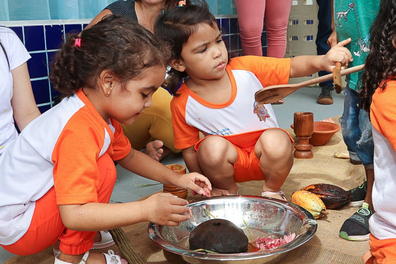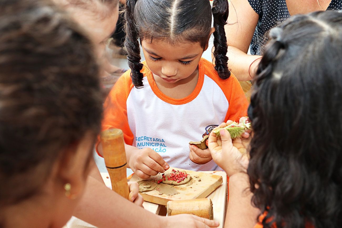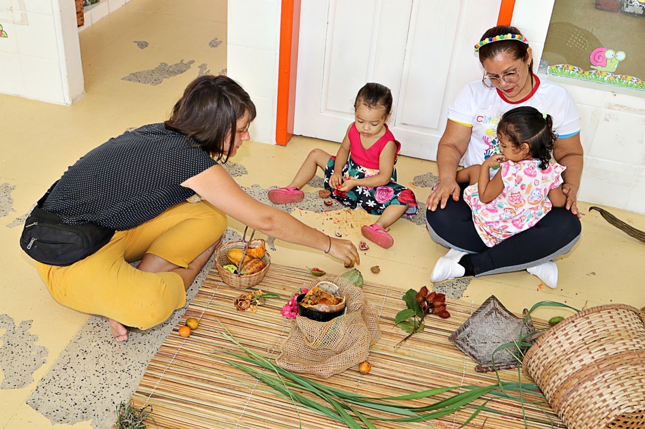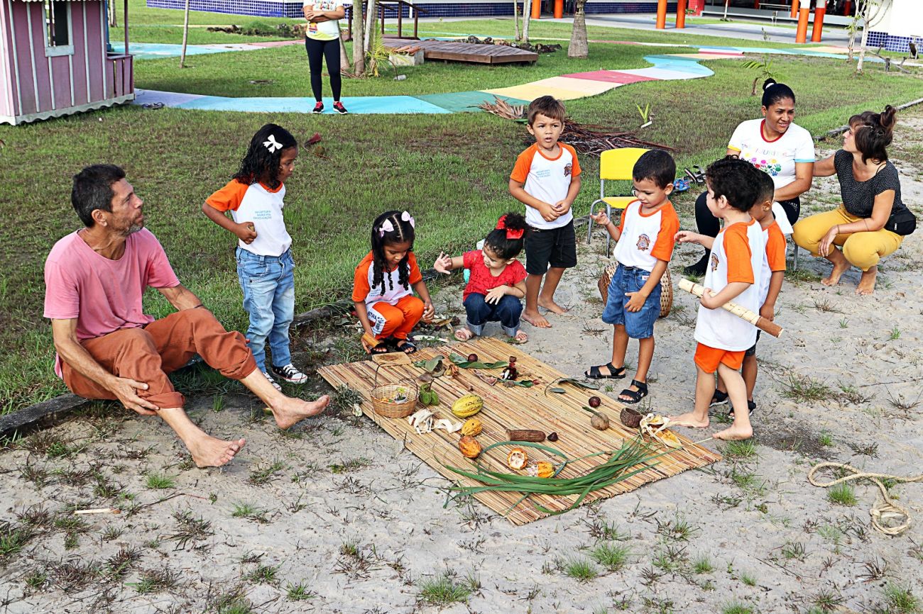 Foi assim que em Benevides se iniciou várias rodas de conversa entre os professores das Unidades Infantis para repensar novas estratégias de ensino-aprendizado. Mas antes de se chegar nas crianças, os professores retornaram às próprias raízes, ativando memórias da infância e partilhando saberes, sobretudo o reconhecimento da própria identidade e valorização cultural.