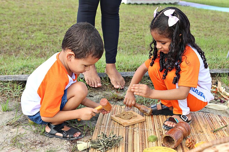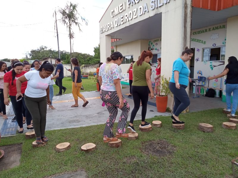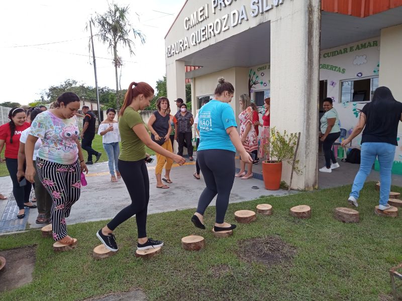 A Secretaria Municipal de Educação (SEMED), em parceria com o Centro de Formação e Pesquisa de Benevides, recebeu a equipe do Coletivo Taboa, por meio do projeto Natureza das Infâncias, com o apoio do Instituto Alana pelo programa Criança e Natureza, e Urban95, para trocar vivências, pesquisas e aprendizados com professoras e professores das Unidades Infantis da Rede Municipal, sobre como as crianças e até mesmo os adultos podem explorar e criar brinquedos com elementos da natureza, que podem ser coletados nos quintais, como múltiplas possibilidades integrais de aprendizado.