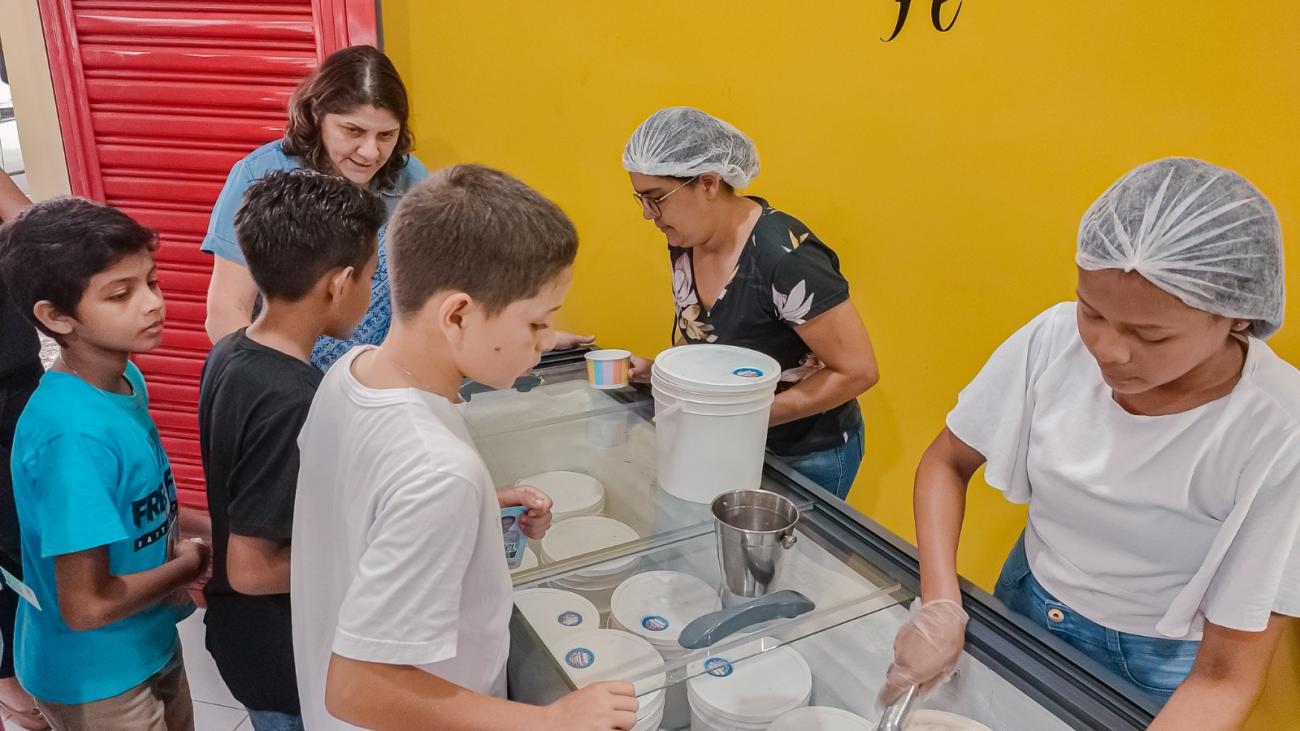 A última reunião do semestre do Comitê das Crianças de Benevides foi realizada na tarde da quarta-feira, 5. O grupo, sempre acompanhado pela coordenação do Centro de Formação e Pesquisa de Benevides, esteve na sede da prefeitura, andou pelo centro da cidade, passando pelas praças e pela feira. O encerramento foi com uma rodada de sorvete.