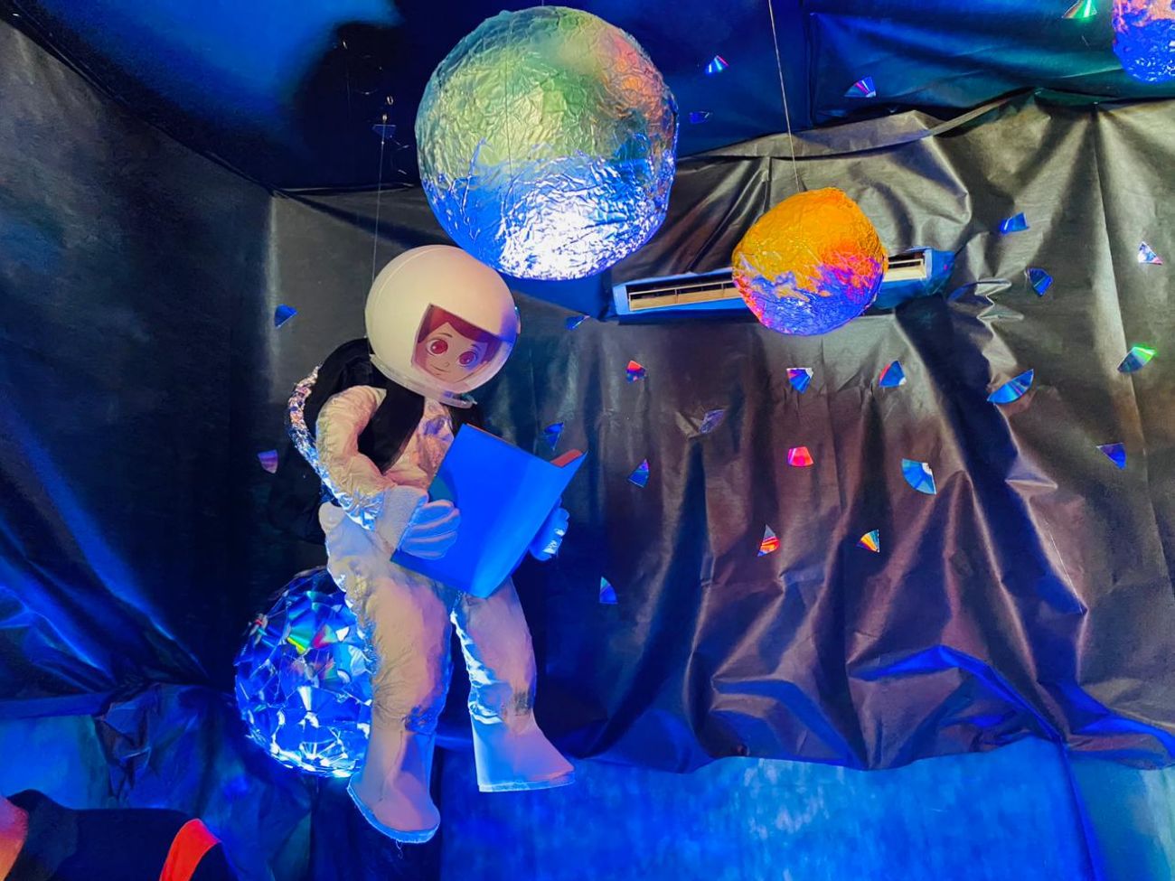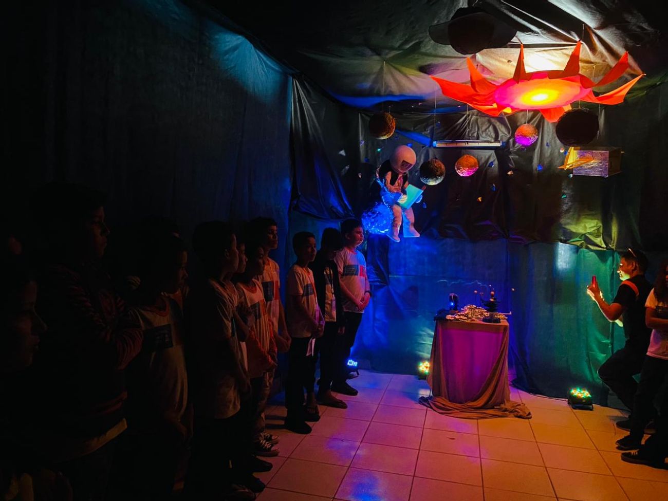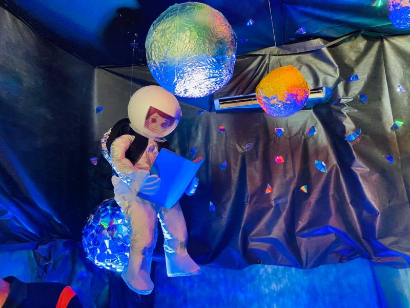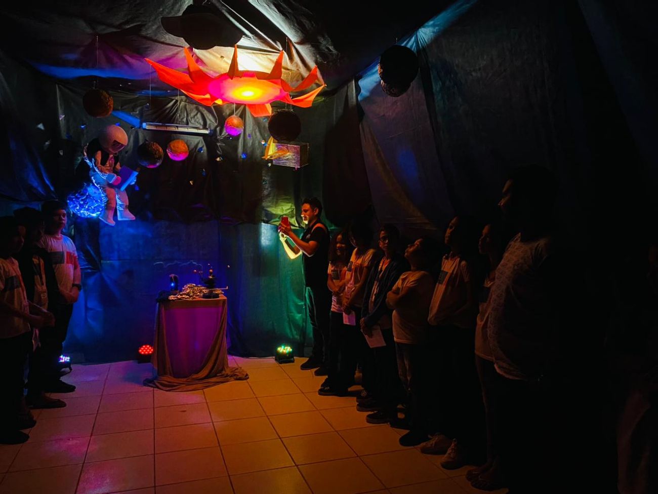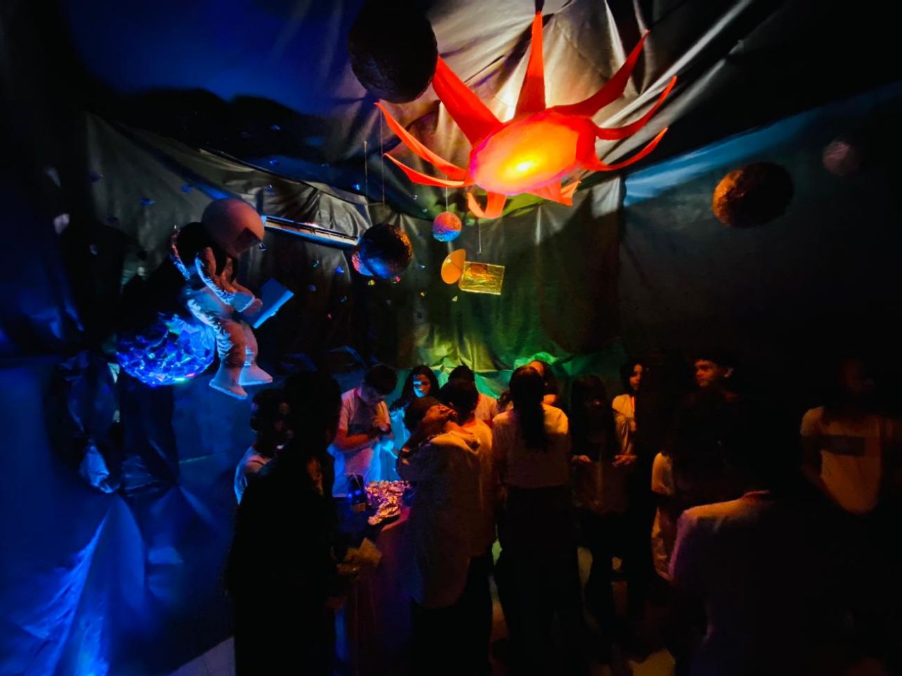 Em uma sala completamente escura, as composições de todas as peças deram vida ao sistema solar, conduzindo a uma experiência visual e sensorial, com cores vibrantes e sons cósmicos. A sensação era como se estivesse no céu.