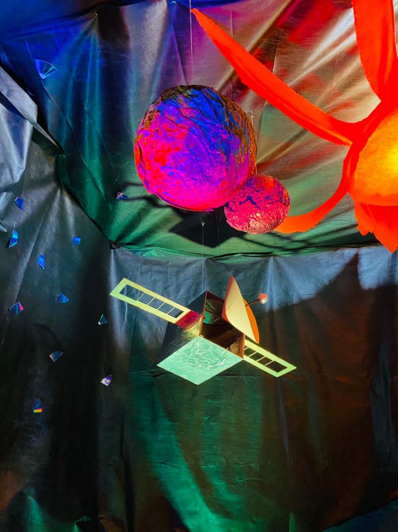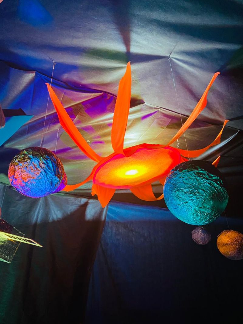 Há mais de um mês os alunos junto com os professores iniciaram um percurso de estudo sobre o sistema solar e durante a pesquisa foram materializando os corpos celestes que formam o sistema, como o Sol, Mercúrio, Vênus, Terra, Marte, Júpiter, Saturno, Urano e Netuno. Além do Satélite e um astronauta.