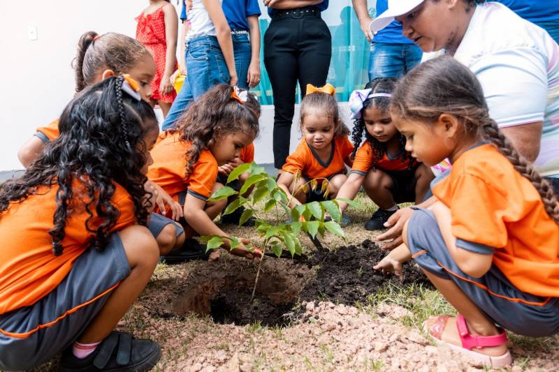 O plantio foi orientado pelos profissionais da Semmat e pelas professoras do CMEI. Participaram da ação, realizada em área da creche, além das equipes da Semmat e Secretaria Municipal de Educação (Semed), representantes do Centro de Formação Integrada, acompanhando membros do Comitê das Crianças de Benevides; e uma equipe do grupo Zeppone.