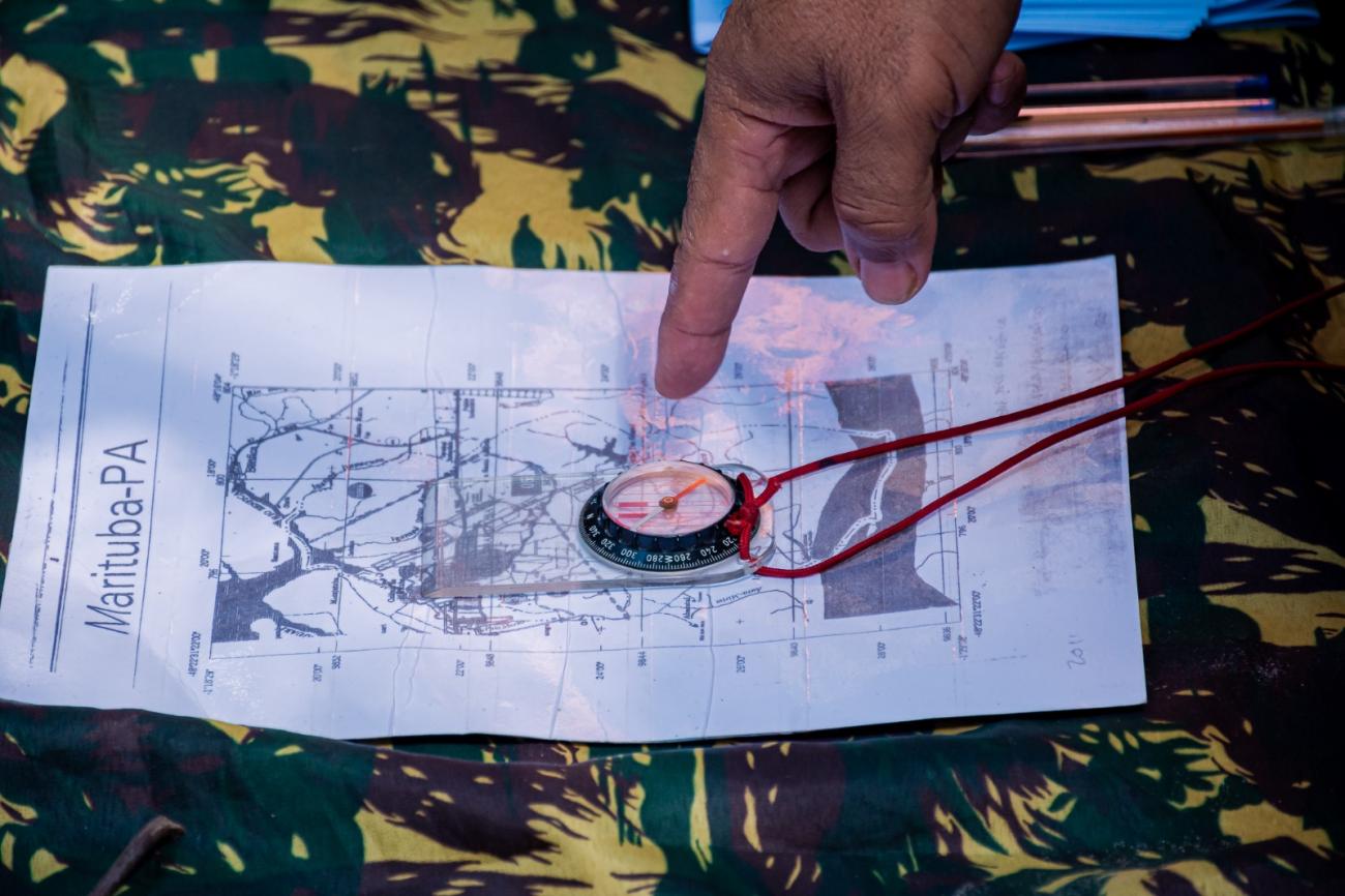Na última aula prática, os participantes, orientados pela equipe do Corpo de Bombeiros, percorreram trilha no meio da mata onde receberam informações sobre o uso de meios de orientação como a bússola, leitura de mapa, o sol e relógio analógico.