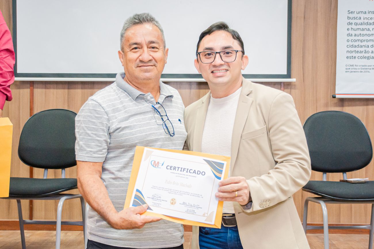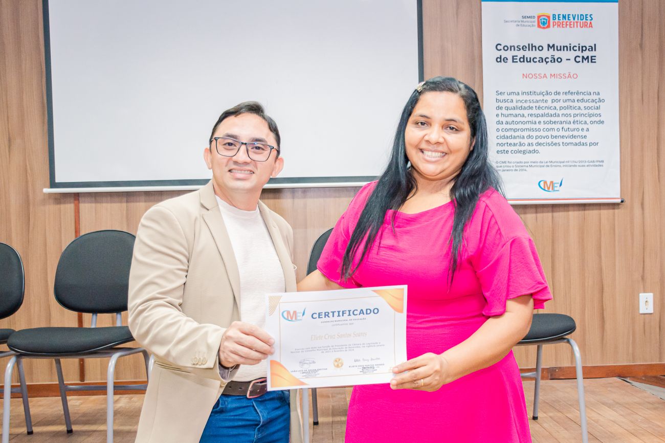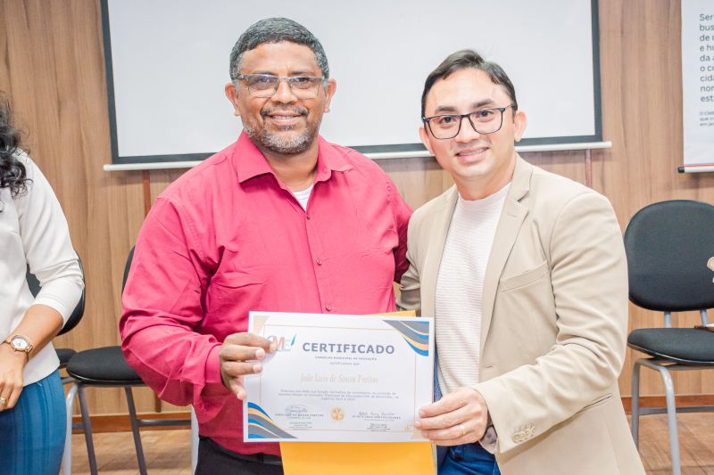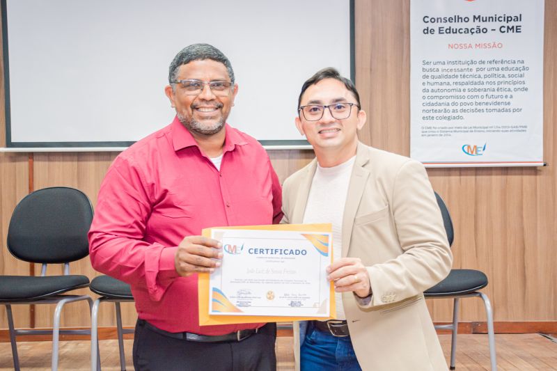 Na ocasião, houve certificação para os conselheiros que atuaram nos últimos anos, e a eleição de novos conselheiros, bem como para coordenação geral do CME, na qual foi reeleito o professor João Luiz como presidente e a professora Eliete Cruz, como vice-presidente.