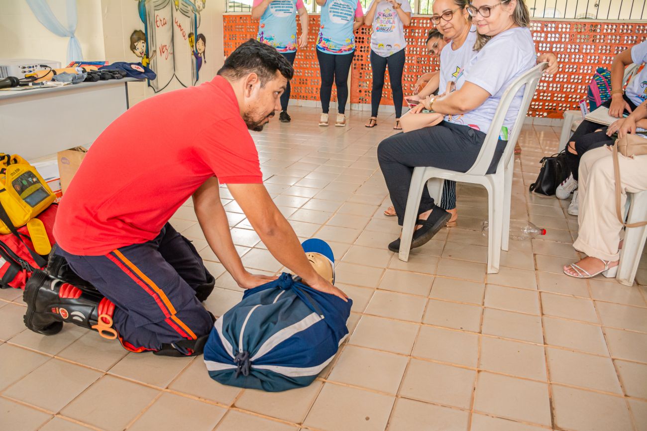 A capacitação de primeiros socorros, que aconteceu na escola Sagrado Coração de Jesus e no CMEI Izaura, foi ministrada pelo profissional Samuel Negrão, instrutor e socorrista do SAMU, que apresentou conhecimentos teóricos e práticos de como salvar a vida de uma criança e de qualquer pessoa que esteja em situação de risco.