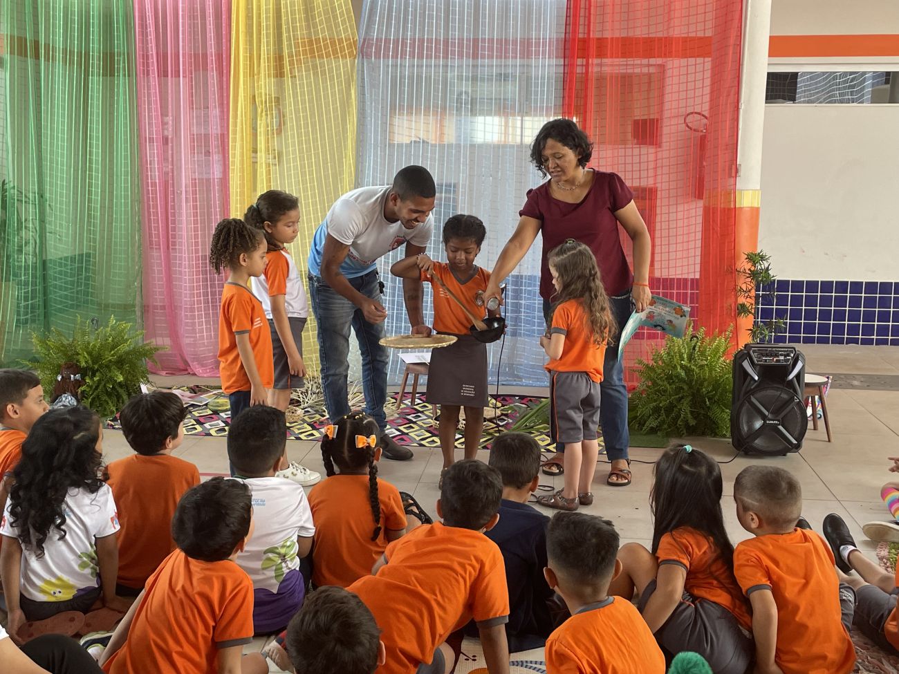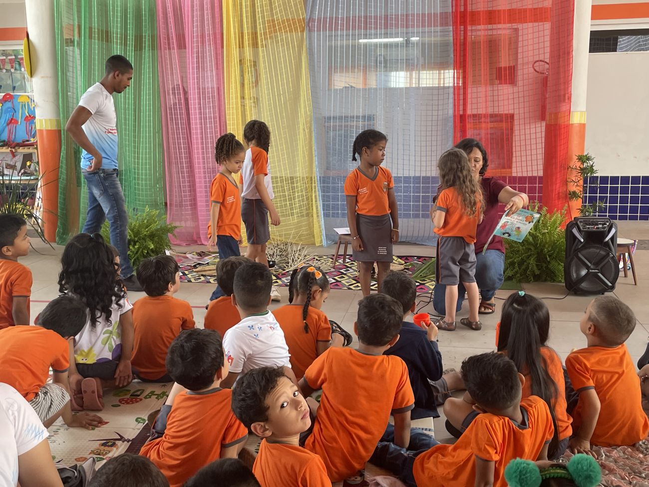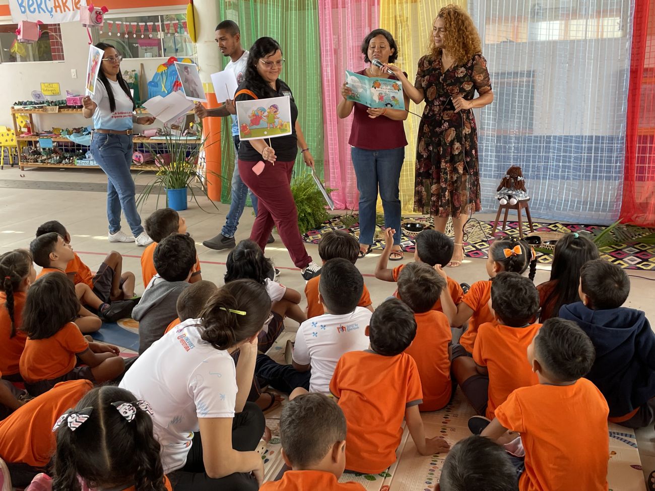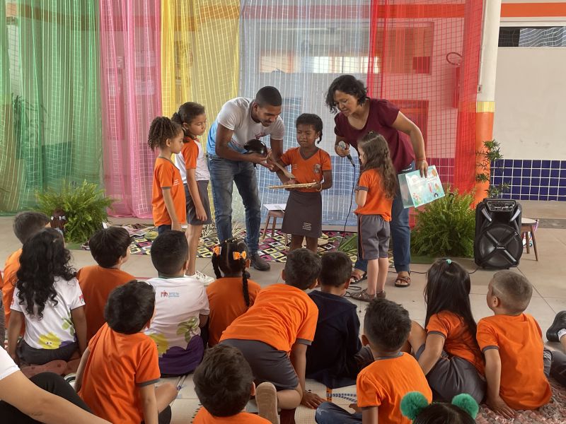 As crianças não somente ouviram a história de forma criativa, mas também embarcaram no imaginário, vivendo a história concretamente por meio de um pequeno teatro com representatividades negras e um cenário com elementos regionais do Pará. "Foi muito legal! Gostei muito da história do cabelo de bolinhas", disse uma das crianças.