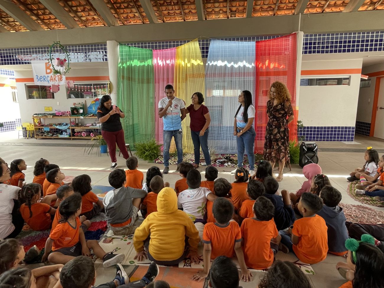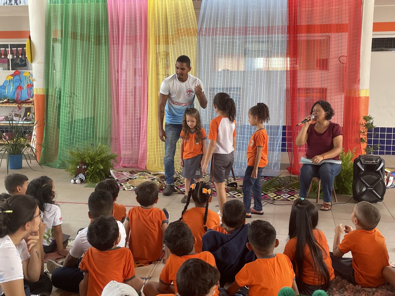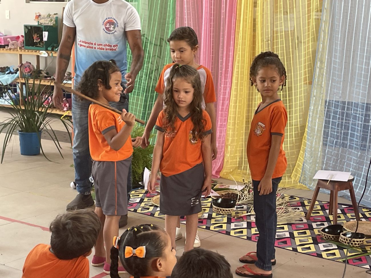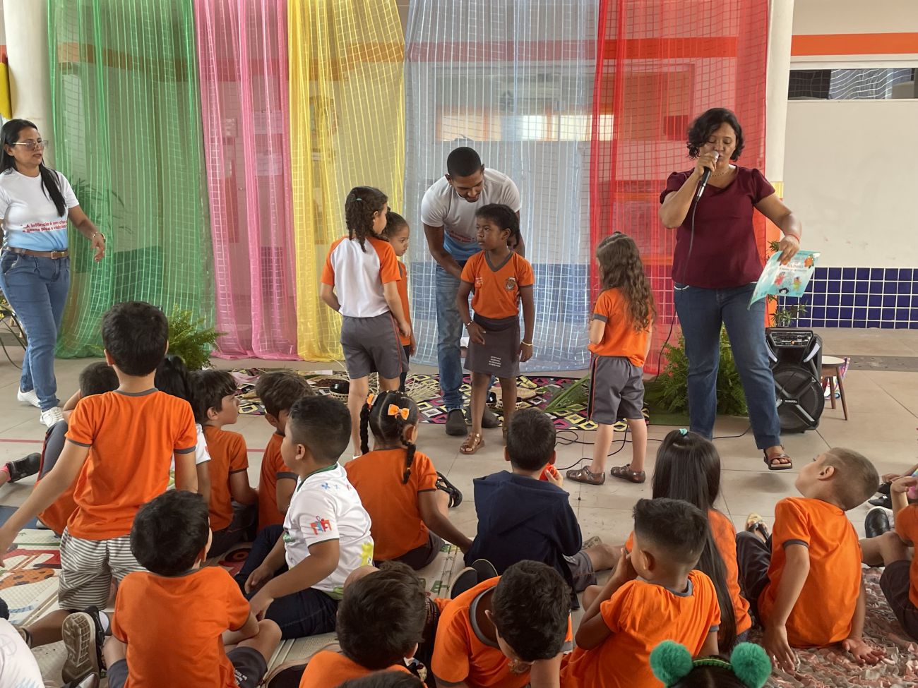 As crianças não somente ouviram a história de forma criativa, mas também embarcaram no imaginário, vivendo a história concretamente por meio de um pequeno teatro com representatividades negras e um cenário com elementos regionais do Pará. "Foi muito legal! Gostei muito da história do cabelo de bolinhas", disse uma das crianças.