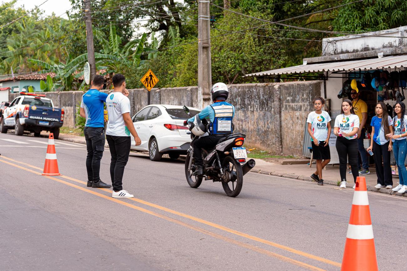 Os jovens abordaram ciclistas, motoristas de carros e motociclistas que passavam pela Avenida Nações Unidas, em frente à Escola Ana Teles, e fizeram um trabalho de orientação sobre a importância de evitar as infrações de trânsito que, infelizmente, se repetem todos os dias, como trafegar de moto sem o uso de capacete ou dirigir sem o cinto de segurança.