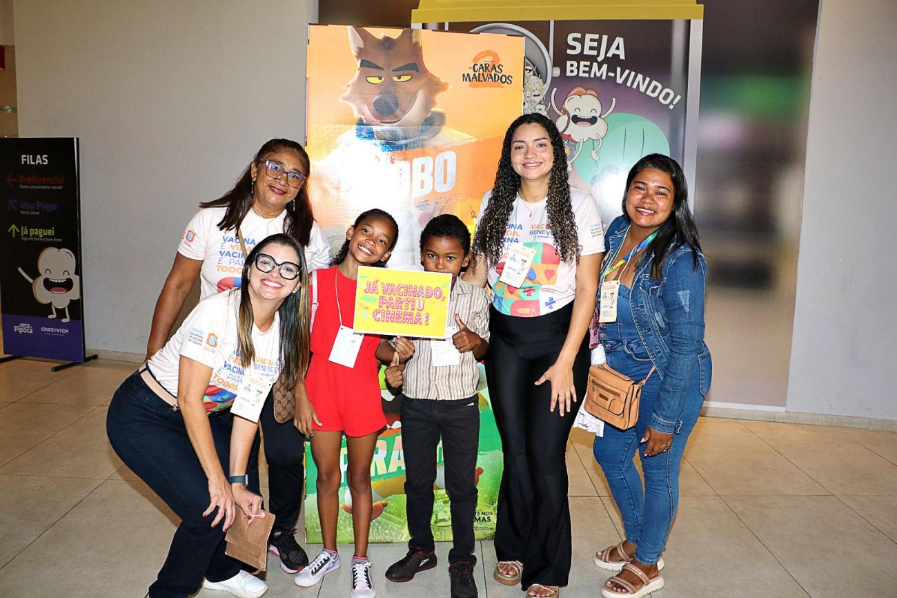 Crianças com o calendário vacinal em dia ganharam um dia especial de cinema no shopping..