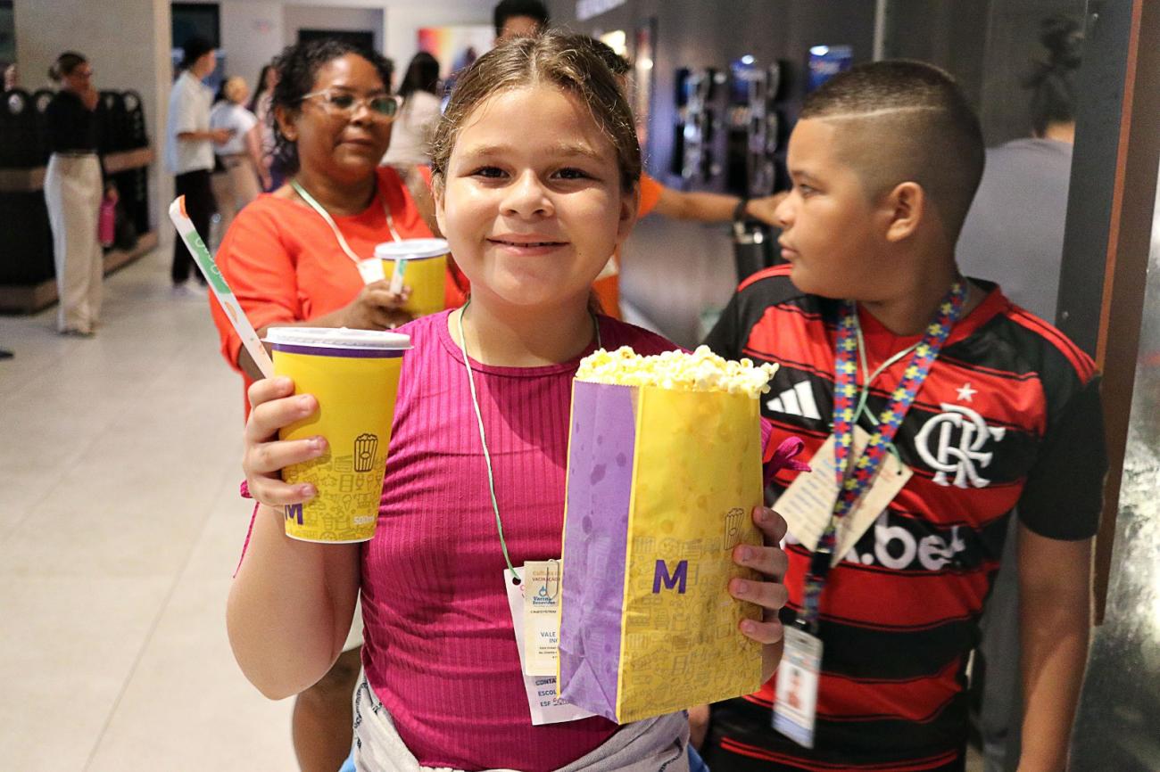 Em uma iniciativa que une saúde, educação e entretenimento, a Prefeitura de Benevides, em parceria com a rede de cinemas Cine System, realizou o projeto “Cultura que protege – Vacinação com diversão!”. Nesta terça-feira (26), quarenta crianças de 9 a 14 anos com o calendário vacinal completo foram premiadas com uma sessão de cinema especial no Shopping Metrópole, incluindo pipoca e bebida.