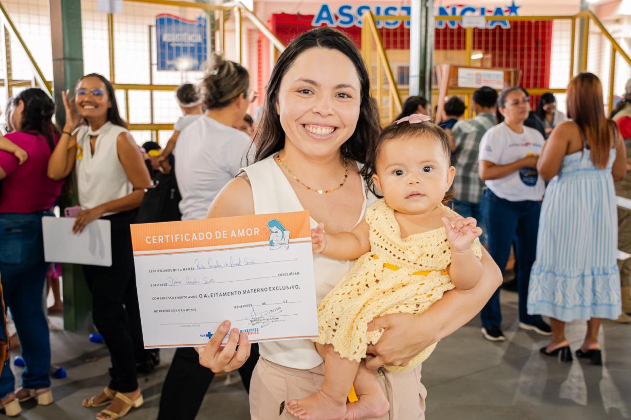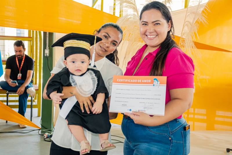 Ao final, a equipe da Saúde entregou certificados aos bebês que representaram todos aqueles que participaram do programa Primeiro Afeto, mantido pela Prefeitura de Benevides, e que foram alimentados exclusivamente com leite materno até os seis primeiros meses de vida e àqueles que fizeram a transição correta e saudável para outros alimentos após este período.