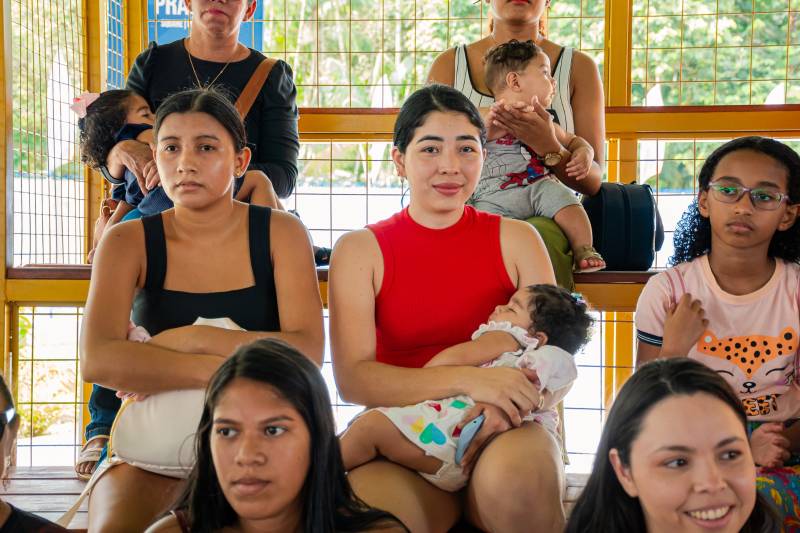 Roda de conversa com profissionais da saúde para tirar todas as dúvidas das mamães. O cuidado com a vida começa aqui.A Usina da Paz de Benevides foi o palco perfeito para este encontro de amor, cuidado e informação sobre a primeira infância.Juntas, somos mais fortes! Mães de todo o município se uniram para promover a amamentação e quebrar tabus.O evento também foi palco para a entrega de certificações a mães que se capacitaram sobre a nutrição de seus pequenos.