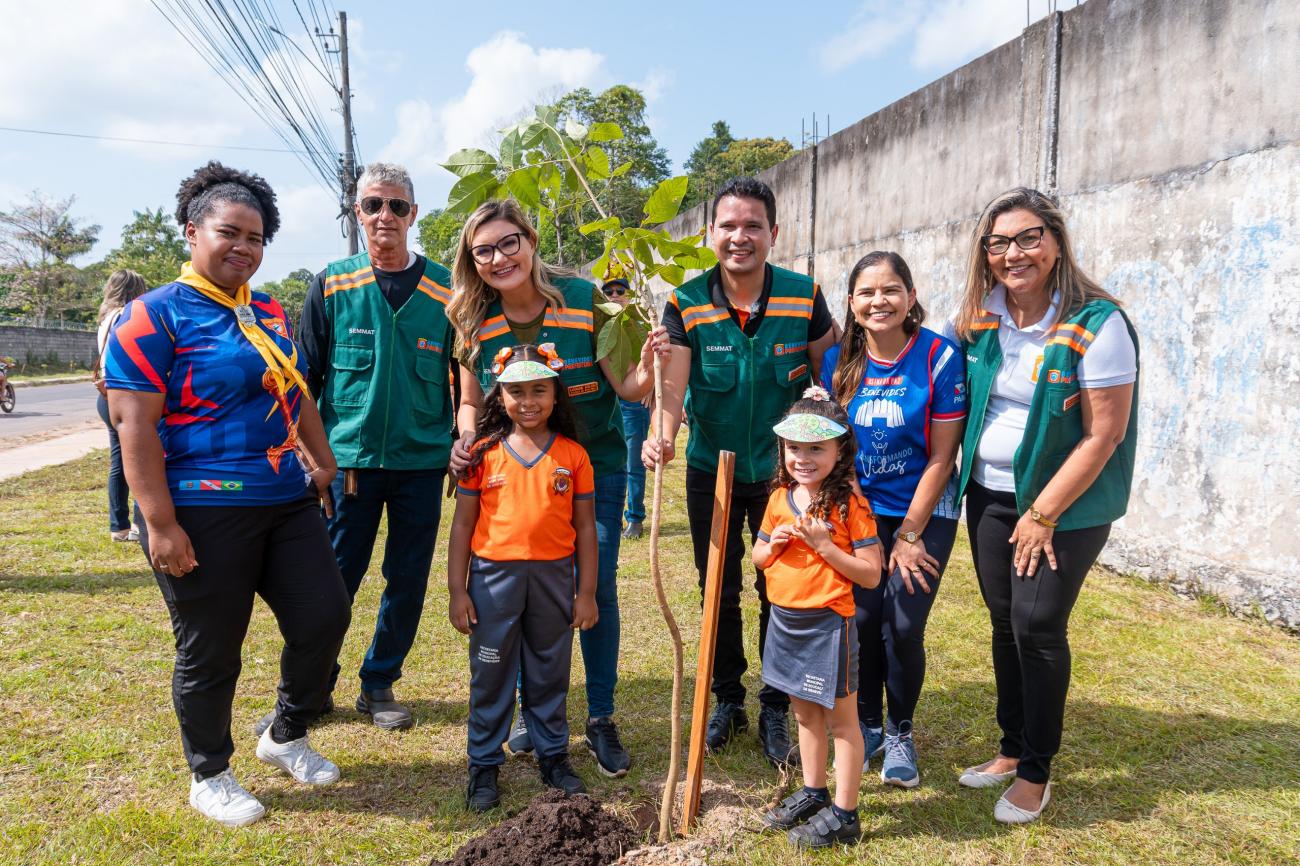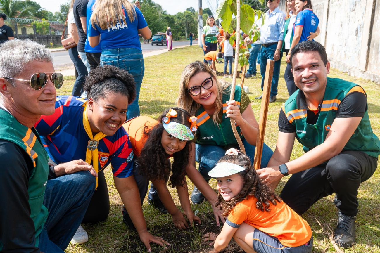 A Prefeitura de Benevides realizou nesta quinta-feira (25) um grande ato de preservação ambiental: o plantio de 710 mudas de árvores como parte do Plano Municipal de Arborização. A ação faz parte do Programa Benevides + Sustentável da Secretaria de Gestão do Meio Ambiente e Turismo (Semmat) e mobilizou crianças e jovens estudantes do ensino público, que representaram diversas escolas e atuaram como protagonistas na transformação urbana da cidade.
