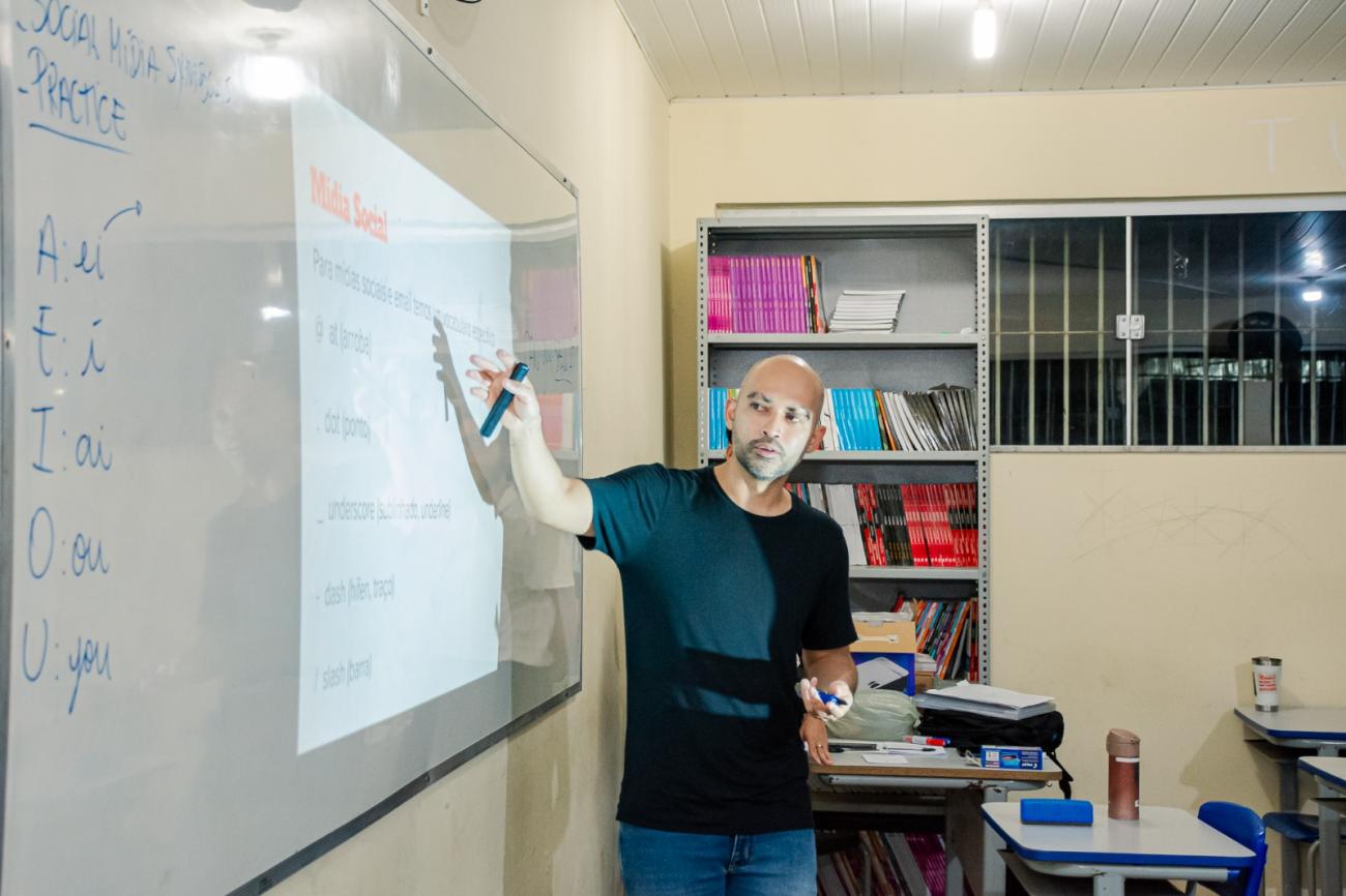 ″O aprendizado é pra toda vida!″ O empreendedor Max Lobato e outros moradores se qualificam no idioma, transformando a expectativa da COP 30 em desenvolvimento pessoal e profissional.