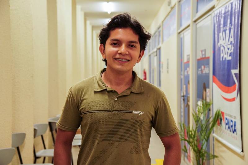 "A gente tá aqui com uma turma de iniciantes. Eles estão aprendendo como cumprimentar as pessoas, como falar sobre as direções para orientar os estrangeiros, como ajudar o turista, e estão aprendendo a falar sobre sua cidade, cultura, história, pontos turísticos, gastronomia e tudo que envolve Benevides que está no coração da Amazônia,” explica Marina Dias, professora de inglês nas turmas da Usina da Paz.
