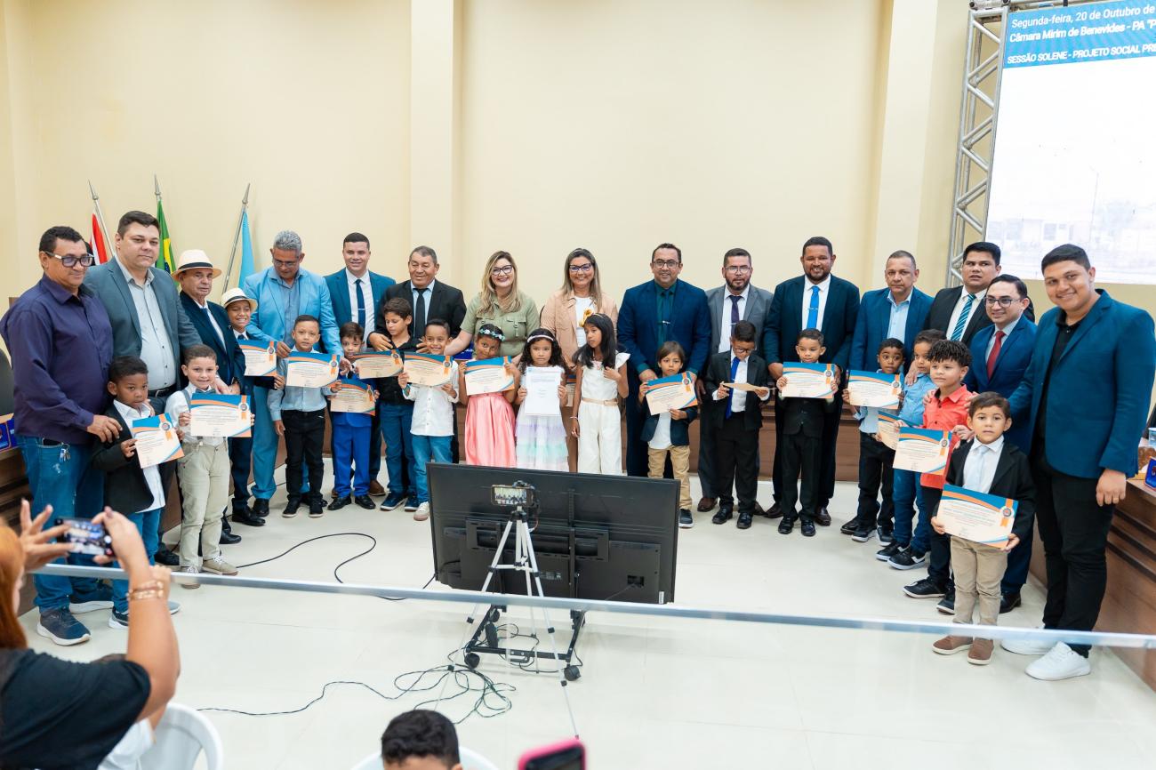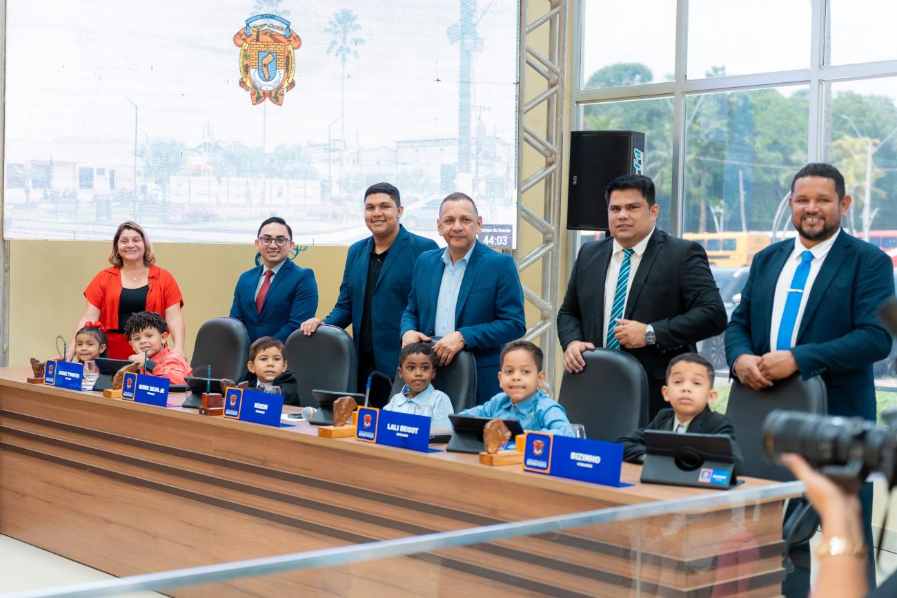 Nesta segunda-feira (20/10) a Câmara Municipal de Benevides se transformou em um espaço de cidadania e sonhos durante a Sessão Solene do projeto "Criança Prefeita por um Dia". Crianças eleitas por meio de votação nas escolas municipais assumiram simbolicamente as cadeiras de prefeita, vice-prefeita, vereadores e secretários municipais.