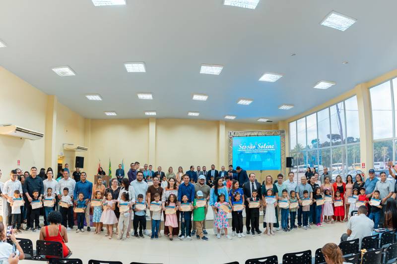 A Sessão Solene foi aberta com o Hino Municipal e seguiu com a fala de todos os envolvidos, em um plenário lotado por famílias