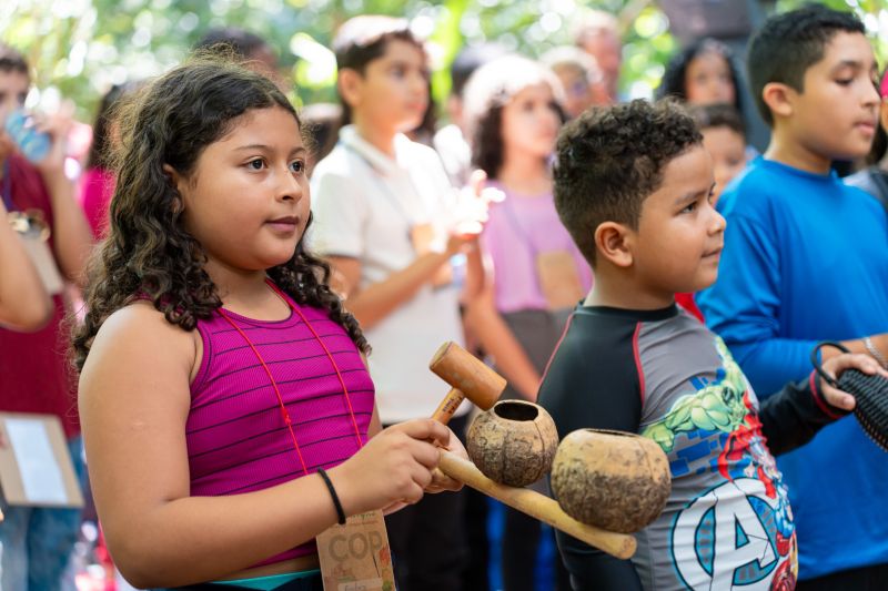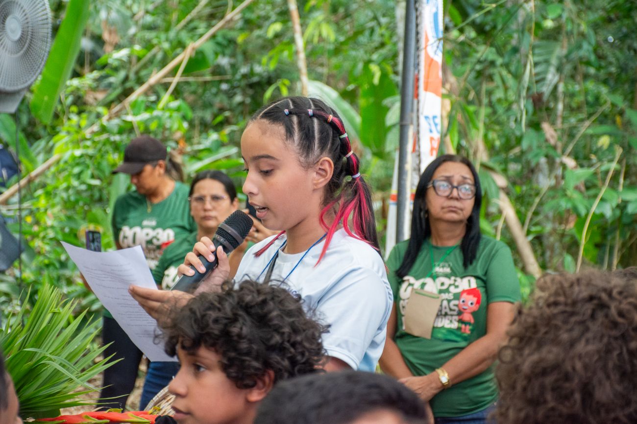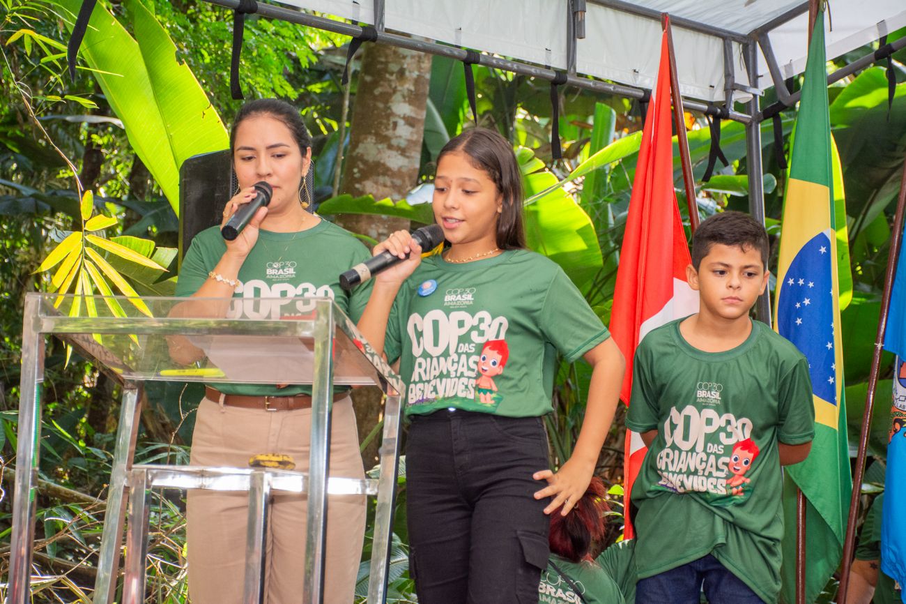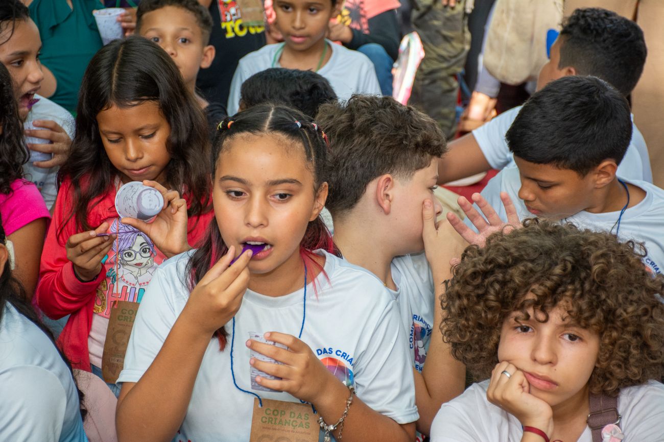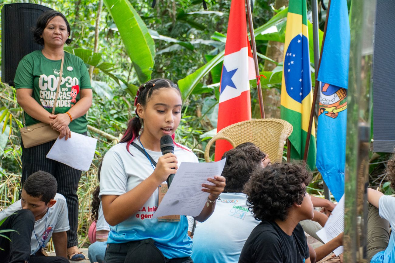 Durante a manhã do primeiro dia da COP das Crianças, elas já surpreenderam as autoridades municipais, estaduais, representantes do governo federal e da UNICEF - presentes no evento - com diversos questionamentos sobre sustentabilidade, preservação da floresta em pé, novas opções de combustíveis, reciclagem de resíduos, entre outros temas cruciais. A iniciativa atende ao desafio de dar voz às crianças que vivem na Amazônia e levar suas ideias e sugestões diretamente para as discussões da COP 30, que será realizada na capital paraense nas próximas semanas.