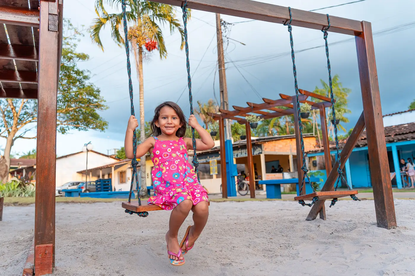 Enquanto o Sol se despedia, o clima era de festa: famílias e muitas crianças se divertindo na praça e contemplando o pôr do Sol. Um verdadeiro retrato da revitalização que transforma o cotidiano da comunidade e reforça o compromisso da Prefeitura de Benevides com o bem-estar da população.
