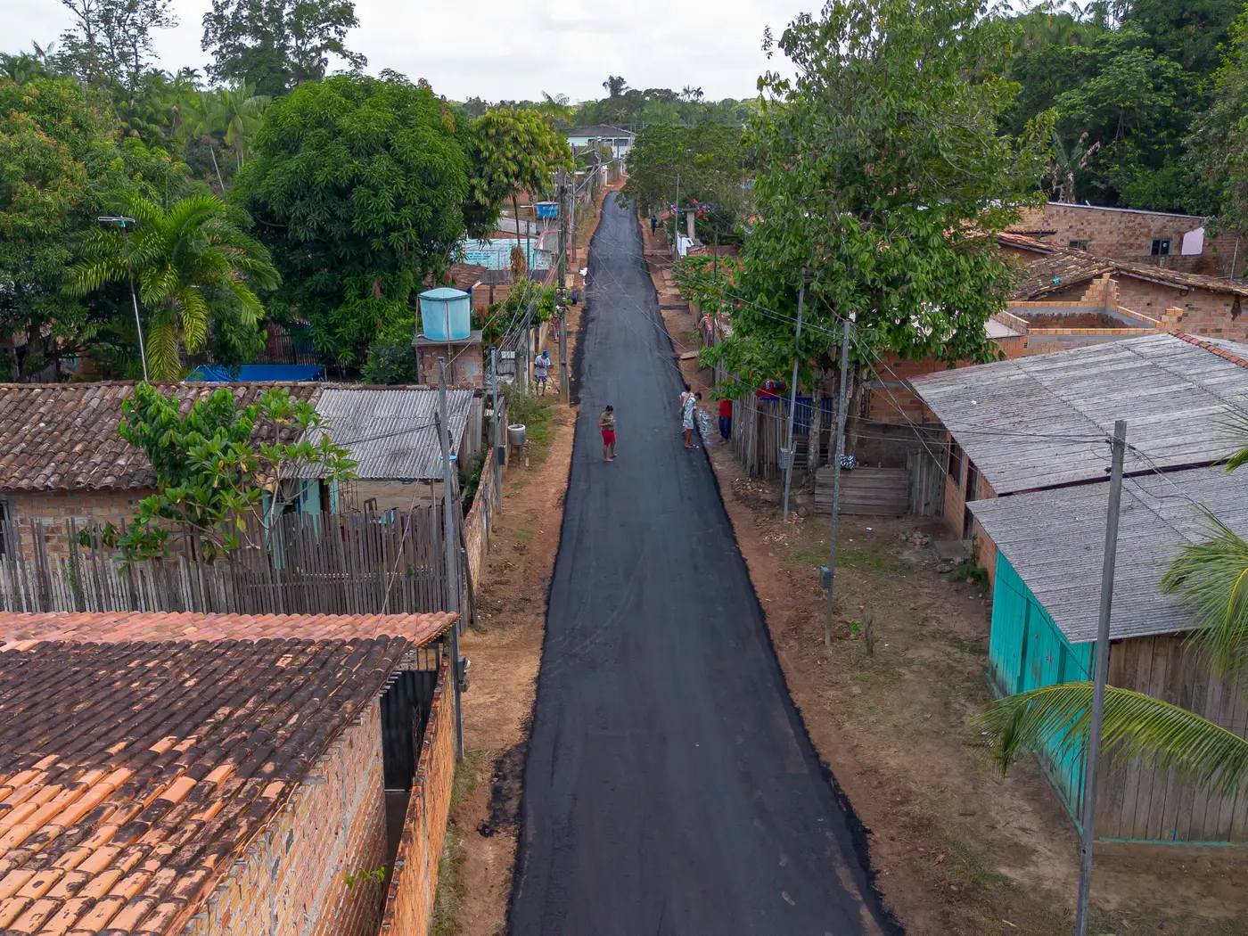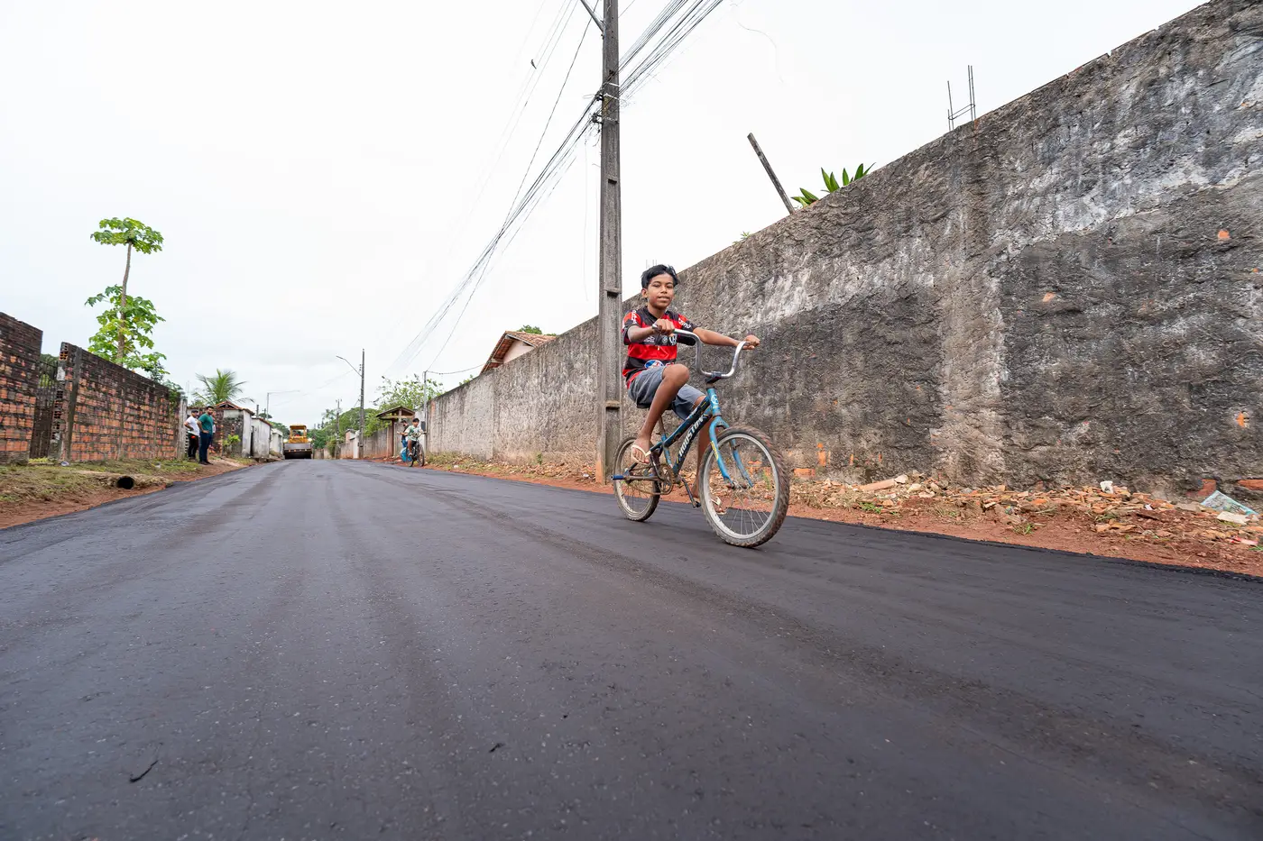 Moradores da rua Norma Velasco, em Murinin, realizam o sonho de ver o asfalto chegar