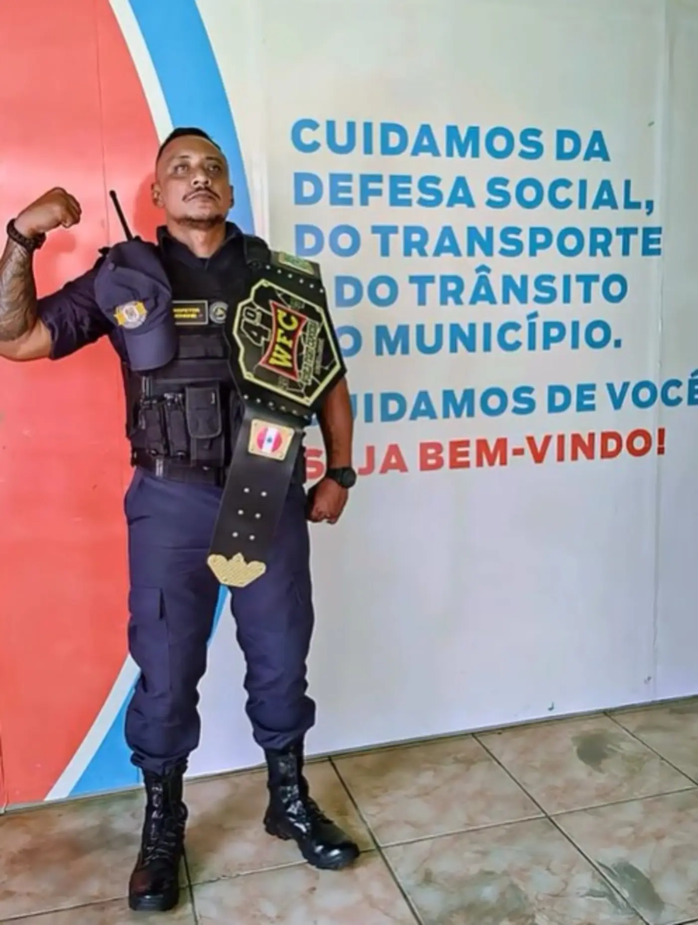 O preparo técnico dos agentes de Benevides também brilha no cenário internacional. O IGM Jhonnie conquistou o cinturão de campeão na categoria Meio Pesado do WFC – World Fight Capoeira, realizado em Belém no último dia 19 de outubro. A vitória em um evento de escala mundial reforça a disciplina e o alto nível de treinamento dos nossos guardas, que representam o município com orgulho dentro e fora do serviço.