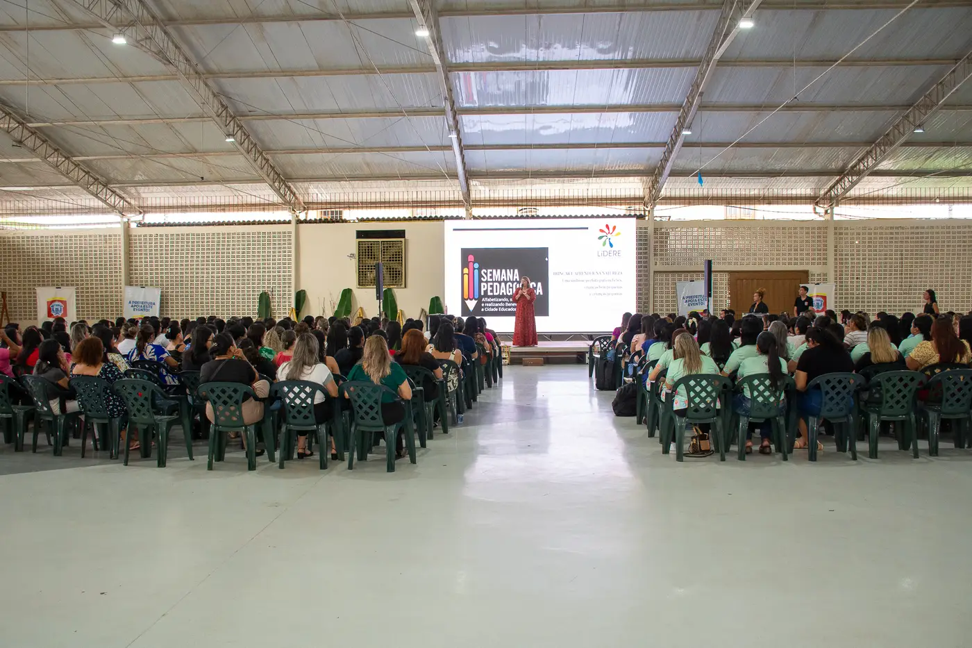 Professores da Educação Infantil (creche, pré-escola, professores suporte e ATEs), bem como Gestores e Coordenadores receberam três dias de formação conduzida pela Educadora Vasti Ferrari, em conjunto com o Professor Dr. Luiz Carlos Ramos na Semana Pedagógica, realizada pela Rede Municipal de Ensino de Benevides.
