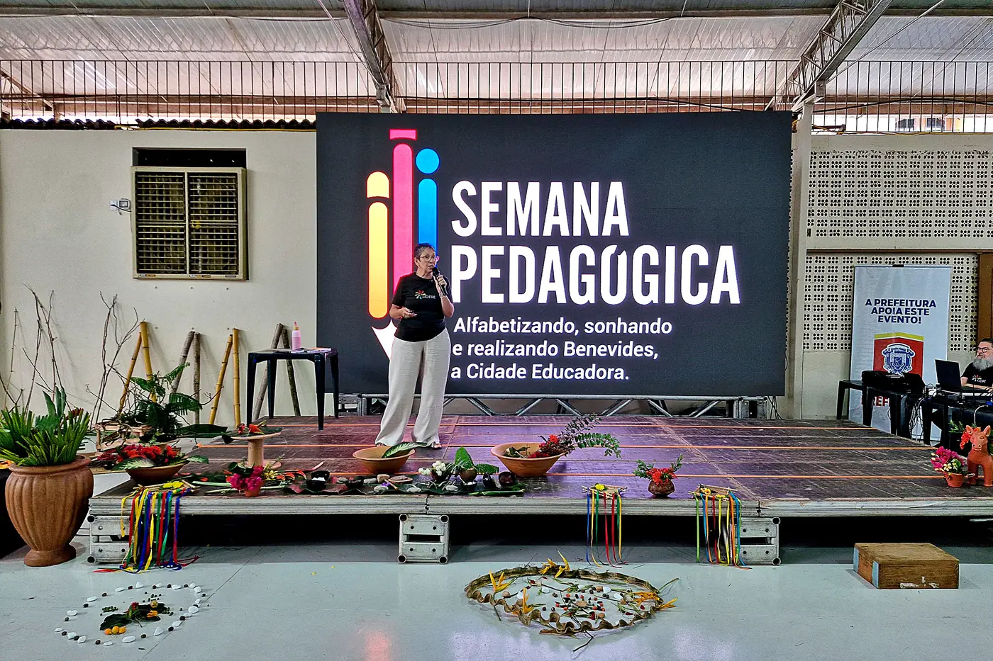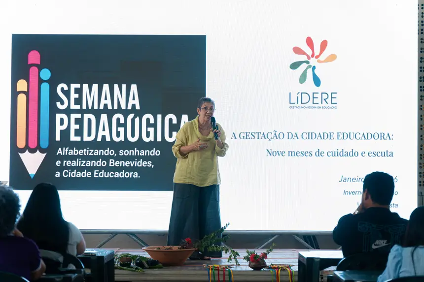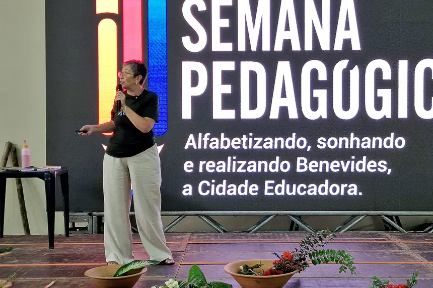 Sob os temas “Brincar e Aprender na Natureza: Uma simbiose perfeita para os bebês, crianças bem pequenas e crianças pequenas”; “Desemparedar para Ler o Mundo e as Palavras”, e “A ‘Gestação’ da Cidade Educadora – nove meses de cuidado e escuta”, os educadores do Município de Benevides, vivenciaram três manhãs de muitas trocas de sabedorias. O evento abrangeu temáticas relacionadas às infâncias, tendo foco na relação entre criança e natureza e seus impactos no desenvolvimento delas, uma vez que “a primeira infância é o momento mais importante do desenvolvimento humano”, como aponta Vasti.