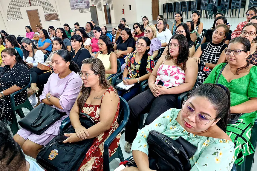 Simultaneamente, as formadoras locais das Escolas em Tempo Integral, Késia Nóbrega e Rosângela Aragão, com apoio técnico de Michela Quemel e Andrea Natividade, ministraram formações para os professores das turmas de 1º ao 5º ano, ATEs, e sala maker, com o objetivo de analisar os resultados de 2025 e realizar a instrumentalização do mapeamento dos resultados de 2026, visando que cada um possa criar suas metas, assim como adquirir maturidade para elaborar intervenções a tempo, e focar nas habilidades fragilizadas de cada turma. O mesmo objetivo foi tema da palestra voltada ao cunho socioambiental, com a Professora Rosângela Aragão.