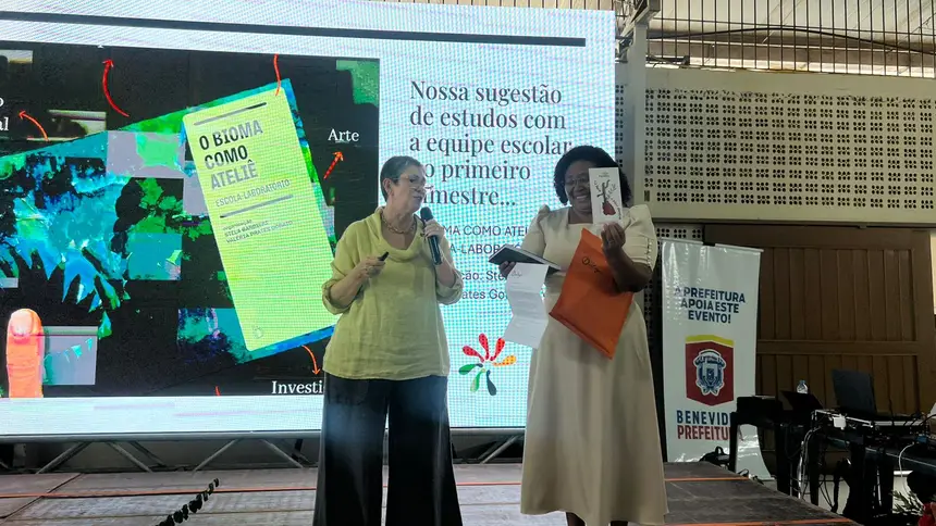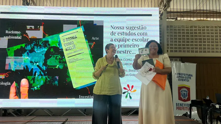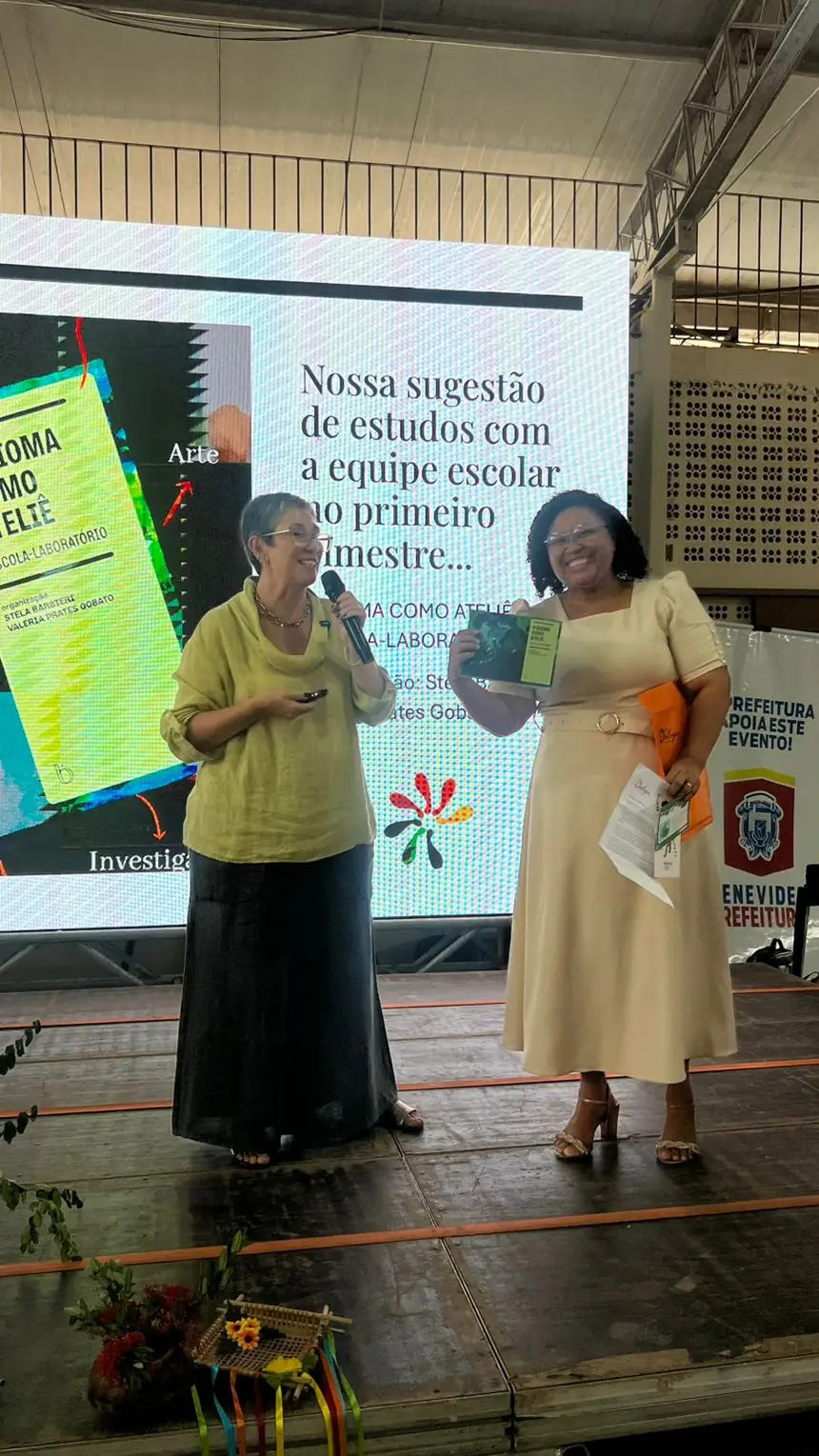 Reconhecendo o título de “Benevides: Cidade Educadora”, ao longo do treinamento, foram discutidas estratégias de desemparedamento nas escolas, abordagem criada pela palestrante, que trouxe consigo uma larga bagagem de ideias que contribuem para a ampliação desse contato entre criança e natureza, citando a elaboração de atividades com utilização de materiais naturais, como elementos da flora local e sementes, pedras lisas, argila natural, gravetos, para realização de propostas como artes efêmeras e também teatros de luz e sombra. As sugestões pedagógicas deram espaço para que os professores pudessem discorrer sobre suas práticas em sala, agregando os novos aprendizados para futuras aulas, além de aperfeiçoar práticas que já são parte de suas realidades, resultando em relatos que impulsionaram novas possibilidades. Ao desemparedar a formação, Vasti também realça que as propostas artísticas devem ser vistas como processos de descoberta e não apenas como resultados estéticos finais. “Não há aprendizagem criativa sem professores criativos”, afirma Vasti, ao defender a grandiosa importância do brincar no dia a dia escolar.