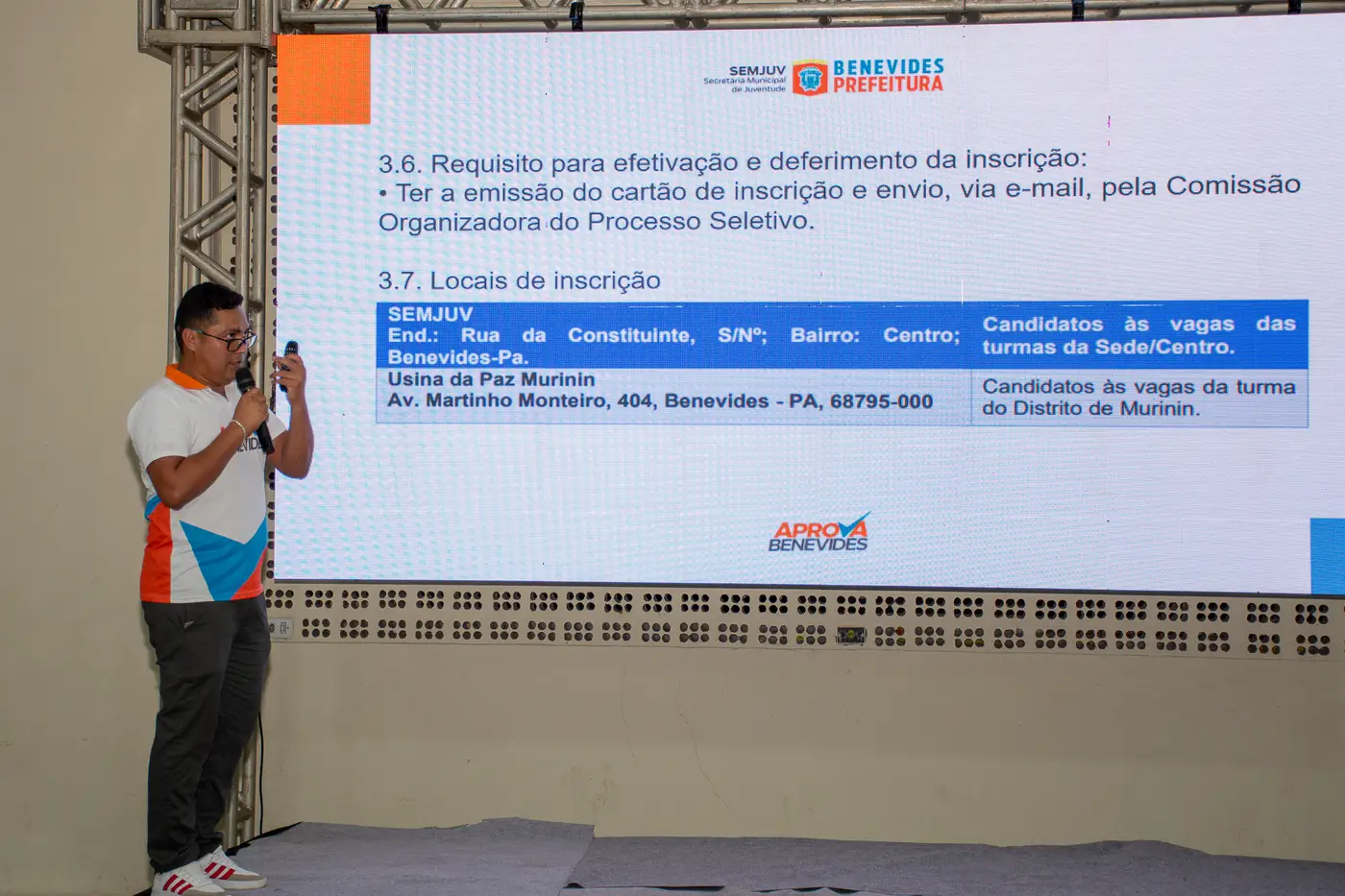 O Aprova Benevides oferece este ano 280 vagas, distribuídas em turmas na sede do municipio e no distrito de Murinin. "Aqui, a gente consegue fomentar o teu sonho", elevou Thiago Gatinho, diretor do Aprova. Ele destacou que o cursinho conta com toda uma rede de apoio, formada pelo Executivo Municipal, legisladores e equipe da Secretaria Municipal da Juventude. "Temos vivido uma evolução constante graças ao esforço e nível dos alunos e apoiadores. Quando essa ideia de pré-vestibular iniciou aqui em Benevides, em gestão passada, eram cerca de 20 aprovações anuais. Este ano de 2026, aprovamos mais de 100 alunos" informou.