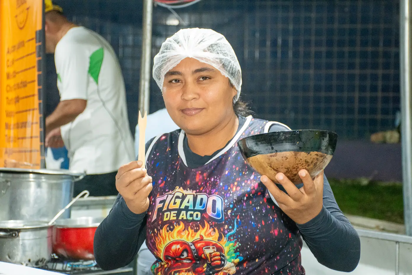 Moradores de longa data também fizeram questão de registrar o orgulho pelo crescimento do evento. Seu Benedito Farias, aposentado e residente em Benevides há mais de 40 anos, acompanhou a festa.